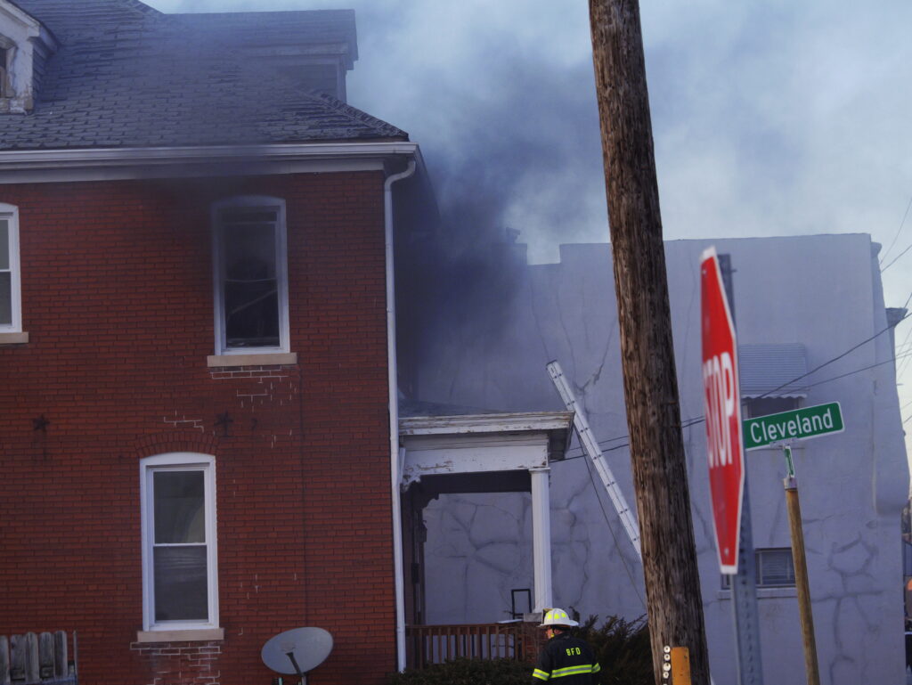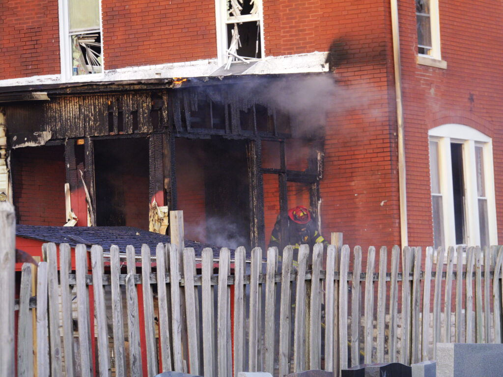 The fire appears to have started on the first floor of the house. The fire spread to the back porch and to parts of the rear roof.