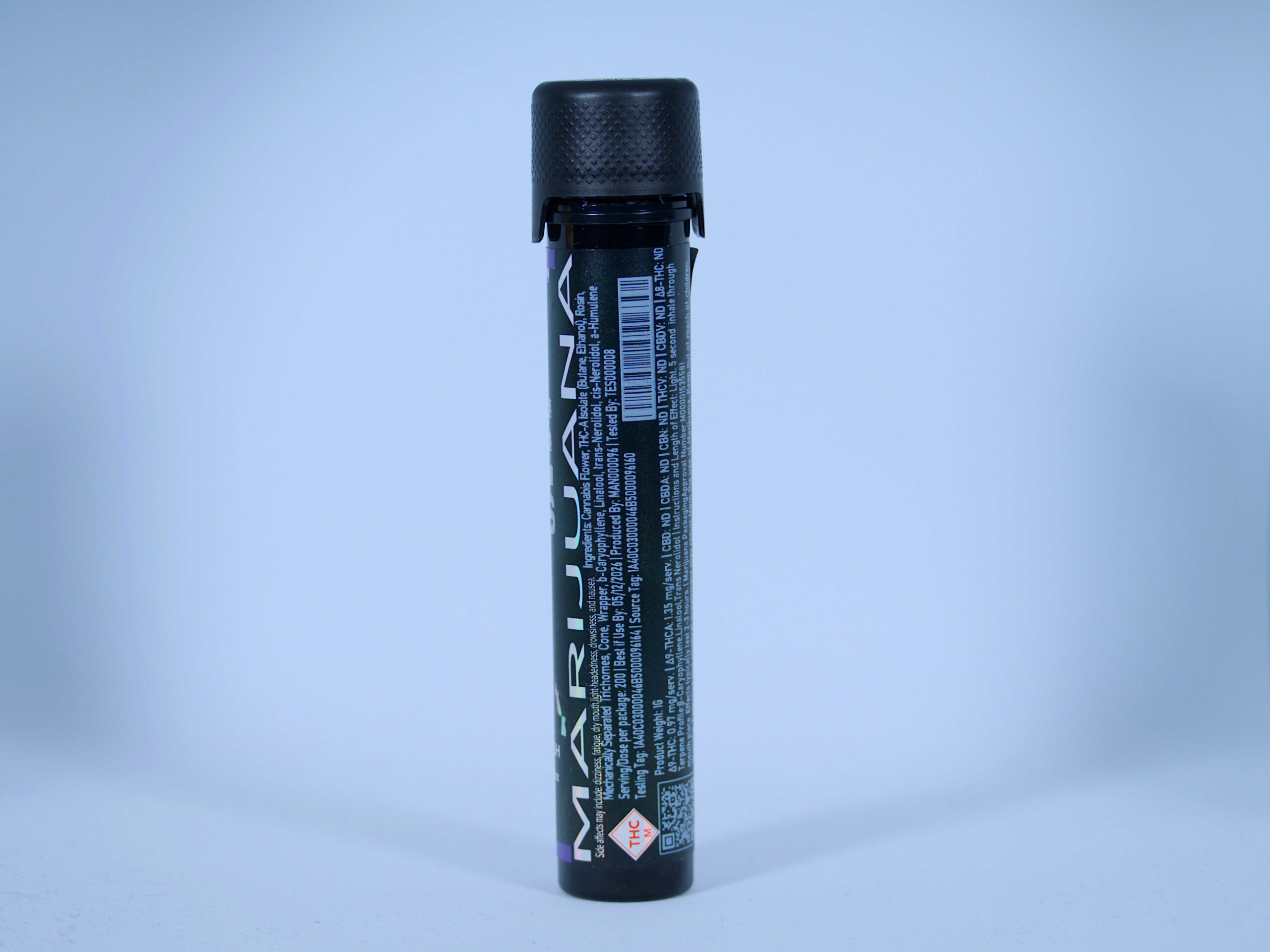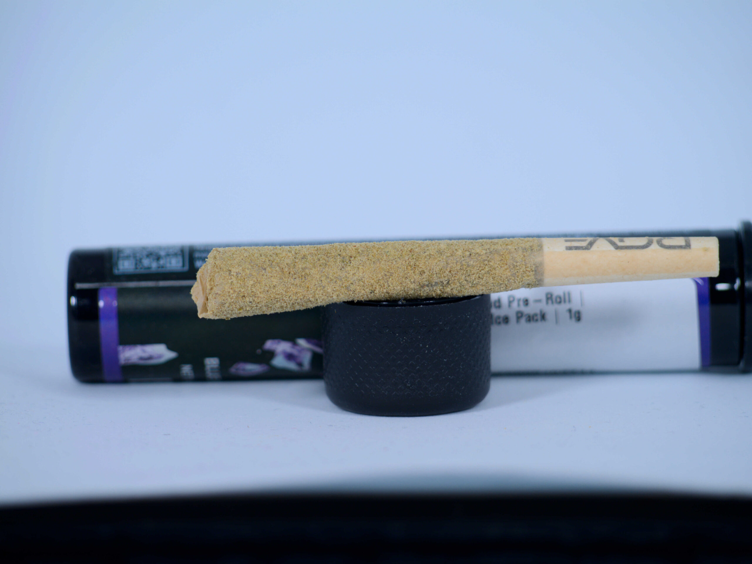 We picked up this pre-roll from Good Day Farms in St. Louis MO for $30. This pre-roll is packed with cannabis flower, coated in BHO and Kief. This pre-roll came packaged in a hard black tube with a breakable security ring. When opening the tube we smelled blueberry and grape with a hint of gas. This blueberry cone has a nice coating of kief which is being held to the paper cone by a light brushing of butane hash oil. We did not crack open the joint to smell the flower that it was packed with as it more than likely took on part of the smell of the kief and BHO. It has a nice shape and was packed a little on the light side. If you are not careful you can crush the cone easily. We used a regular flint lighter to see how it would light. Torch lighters make for a quick and even light due to their design. The blueberry pre-roll lit just fine and continued to burn evenly through the smoke session. Between passing back and forth to Vanna we each consumed about 1/3 of the pre-roll. This was about the right amount to start feeling the effects. They started to take effect about 10 minutes after use. Blueberry Kush provides a nice and heavy high. It starts off heady and giddy. Lots of laughter and energy for about 1 hour. After that the head high from Blueberry Kush wears off and you have a solid body high. Just be careful if you are relaxing because you may take a nap before you know it. Blueberry Kush was a surprising pick as we normally don’t buy $30 pre-rolls from dispensaries. This is a good choice for those that want a little more out of their pre-rolls. We don’t recommend getting them on regular due to the cost and length of usage. A better option may be buying your own supplies and rolling your own infused rolls.